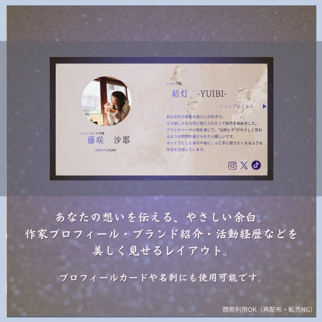 プロフィールページや名刺デザイン、SNS投稿にも活用できます。