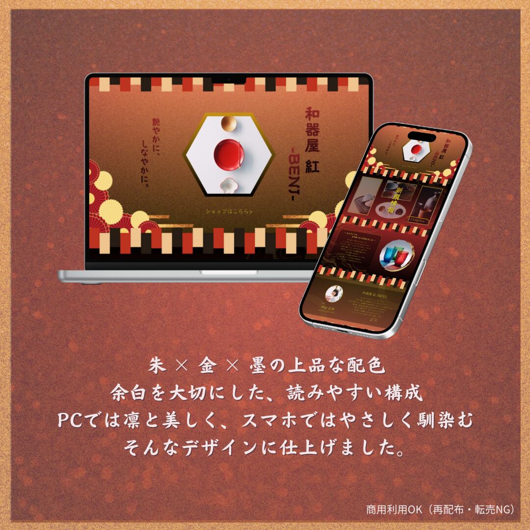 “朱と金、黒”の色彩が織りなす、上質な和の世界観を表現できるLPテンプレート。